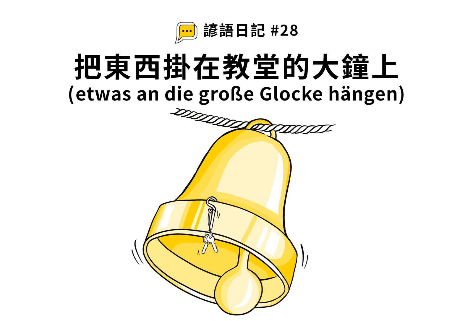 „etwas an die große Glocke hängen“ (把東西掛在教堂的大鐘上)