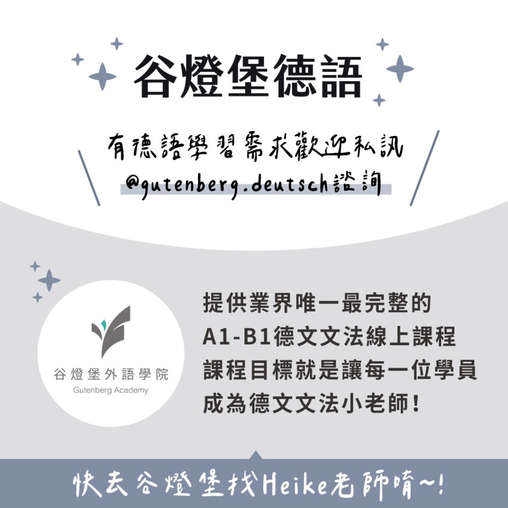 - Instagram→ 谷燈堡德語 或 搜尋 gutenberg.deutsch