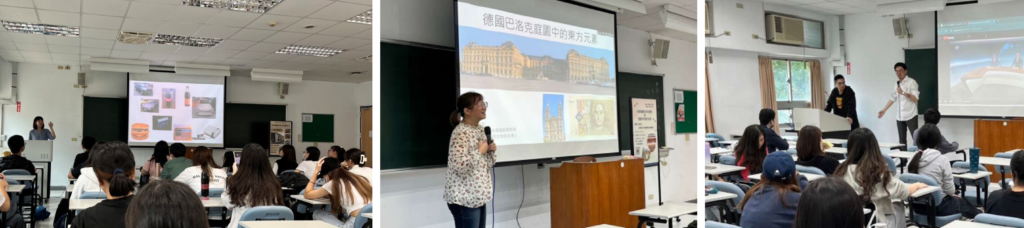 由中國科技大學建築系老師分享德國巴洛克庭園中蘊含的東方元素,藉此了解西方建築型式的發展,從希臘式、羅馬式、歌德式、文藝復興,到演變成16、17世紀的巴洛克式,藉此演講,讓同學們拓展知識緯度,開闊學習視野。